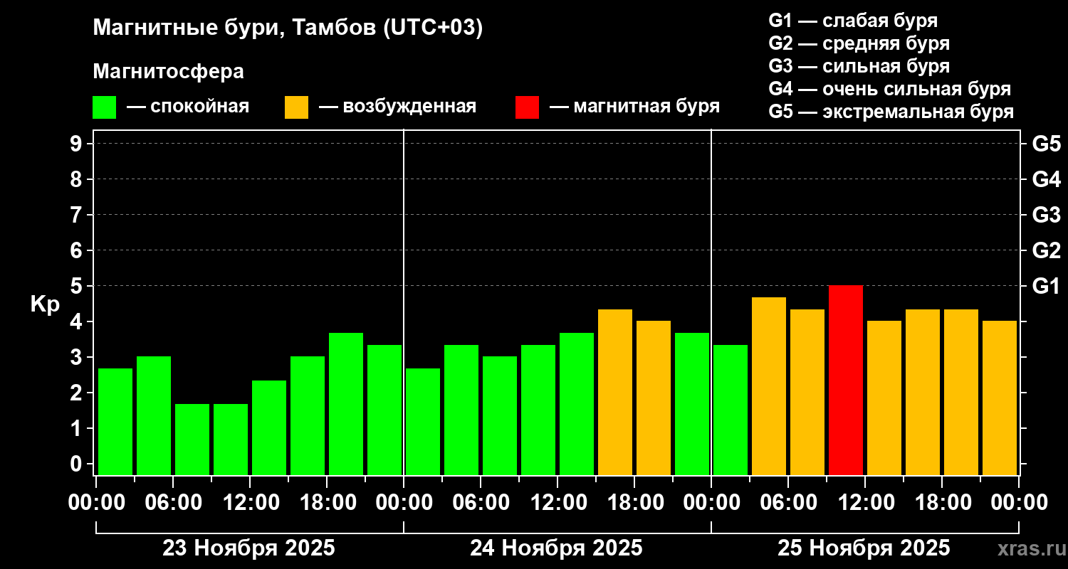 Магнитные бури в Тамбове — 25 ноября 2025 года