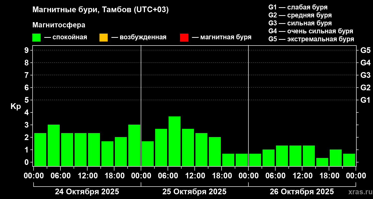 Магнитные бури в Тамбове — 26 октября 2025 года