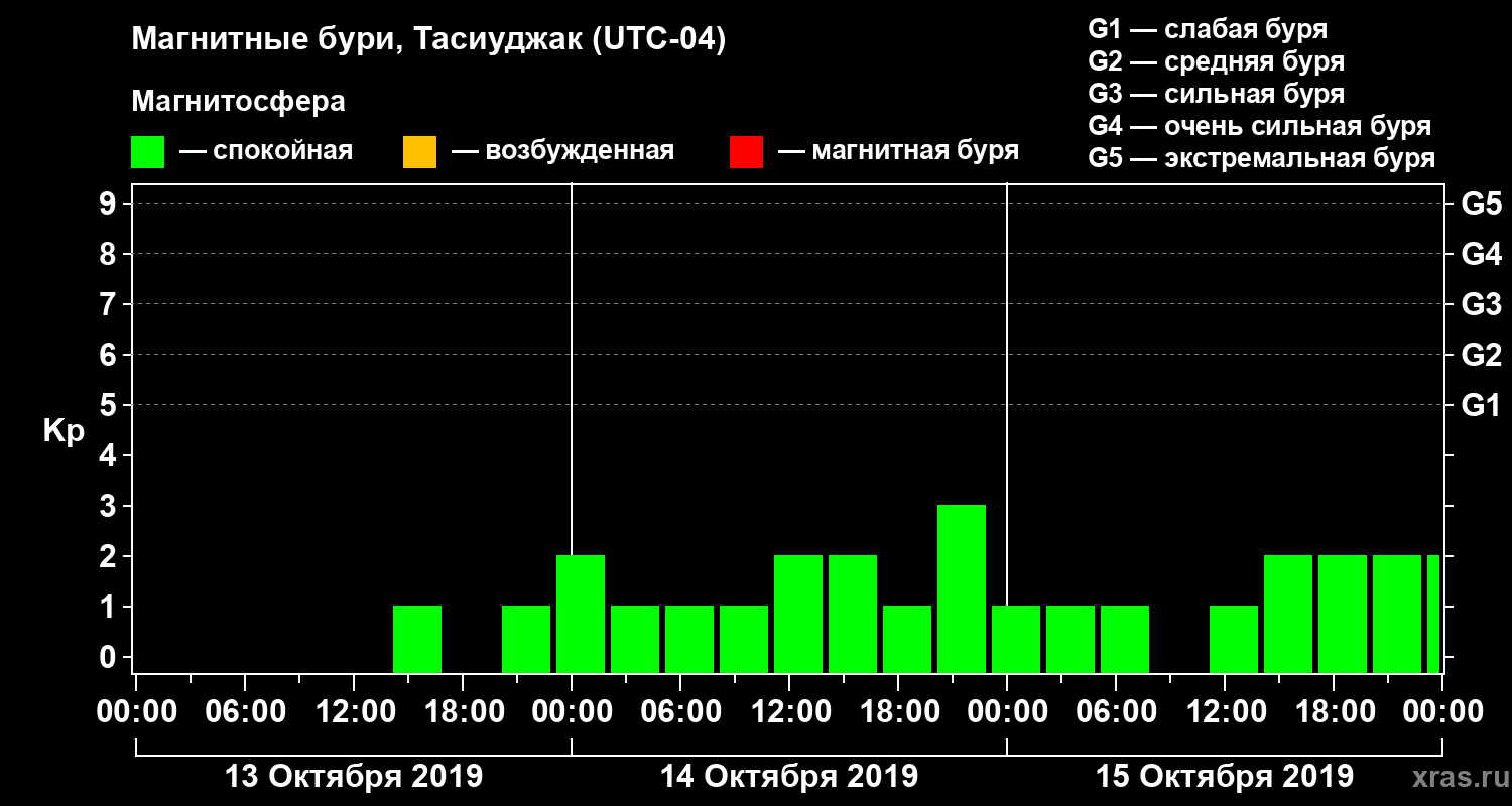 Магнитные бури в Тасиуджаке — 15 октября 2019 года