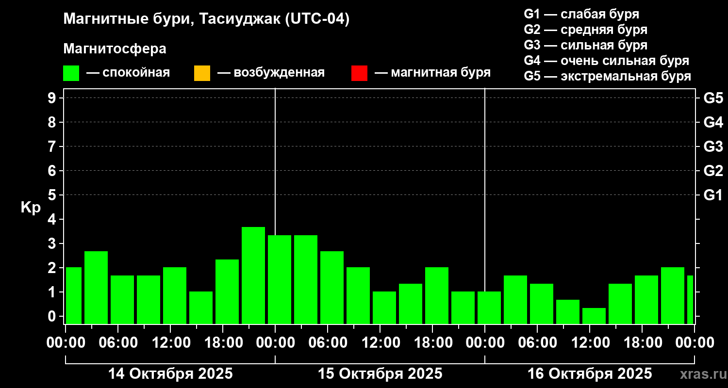 Магнитные бури в Тасиуджаке — 16 октября 2025 года