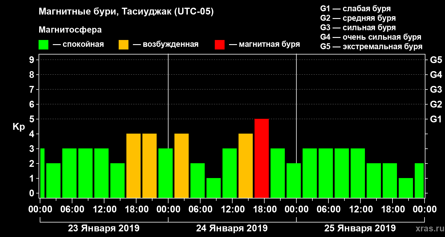 Магнитные бури в Тасиуджаке 25 января 2019 года