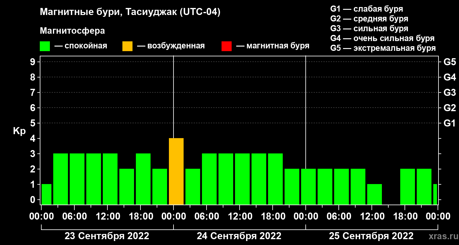 Магнитные бури в Тасиуджаке 25 сентября 2022 года