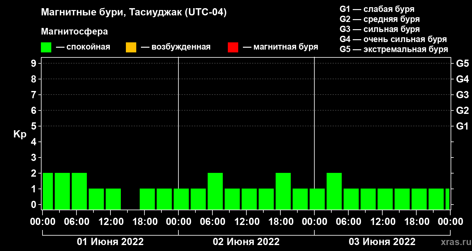 Магнитные бури в Тасиуджаке — 3 июня 2022 года
