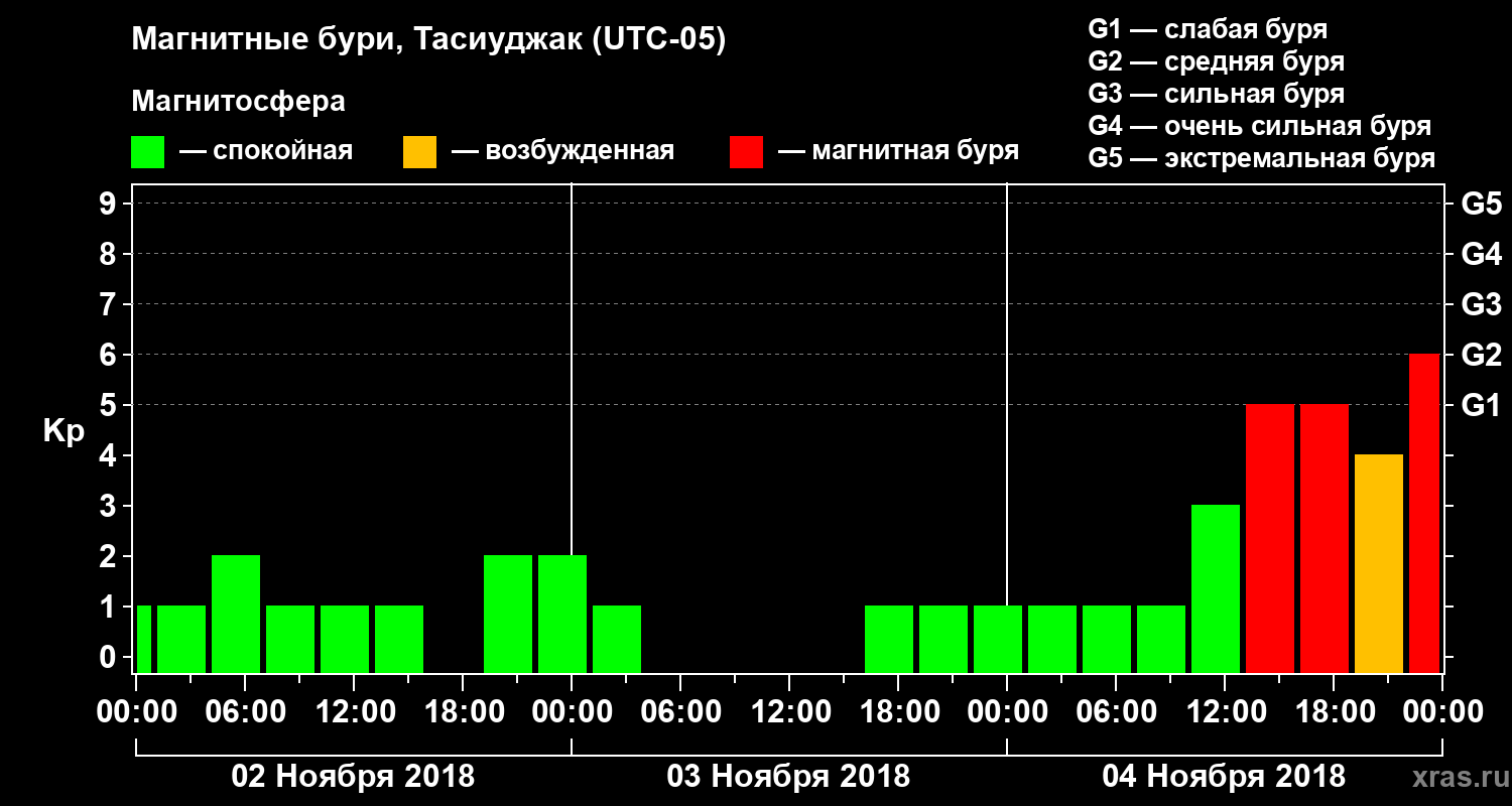 Магнитные бури в Тасиуджаке 4 ноября 2018 года