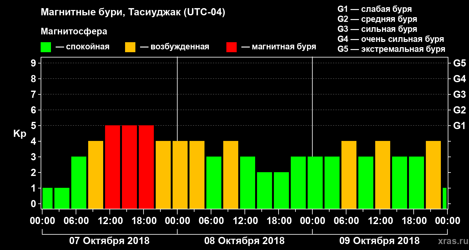 Магнитные бури в Тасиуджаке 9 октября 2018 года