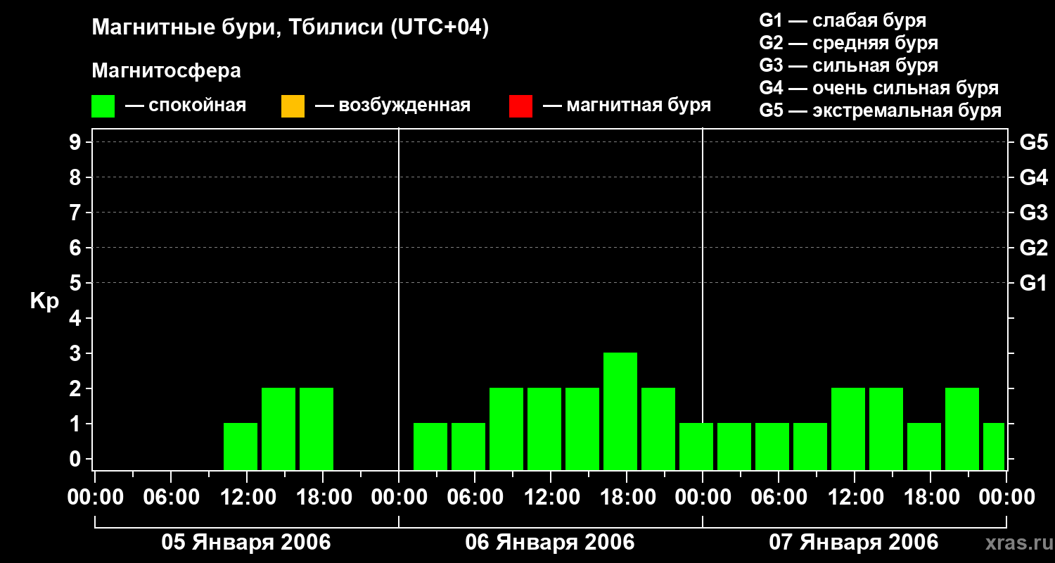 Изменения геомагнитного индекса Kp с 5 по 7 января 2006 года для средних широт