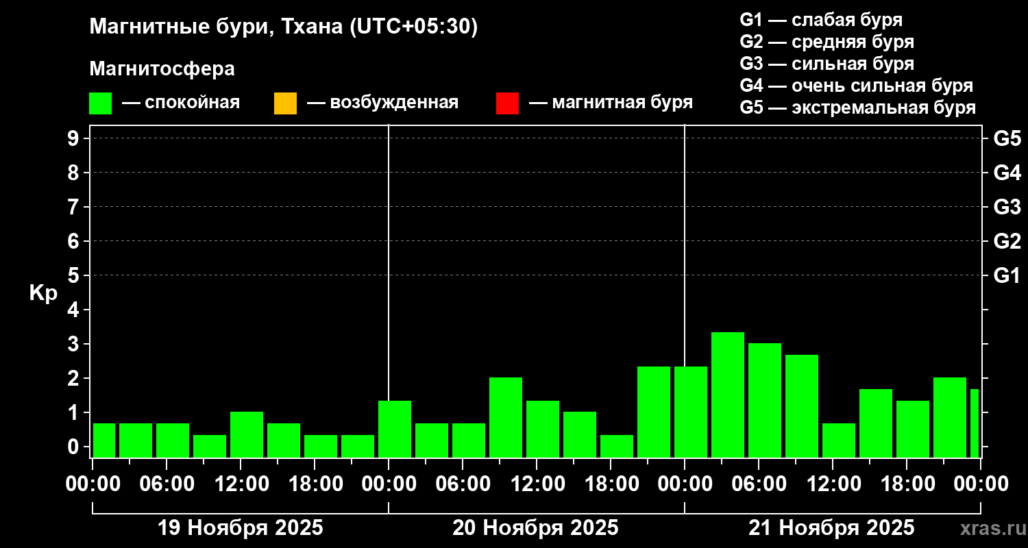 Магнитные бури в Тхане — 21 ноября 2025 года