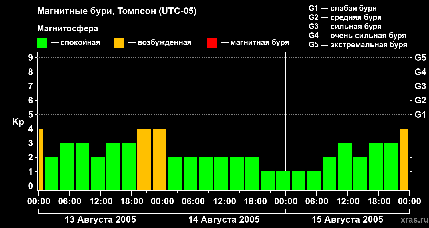 Магнитные бури в Томпсоне — 15 августа 2005 года