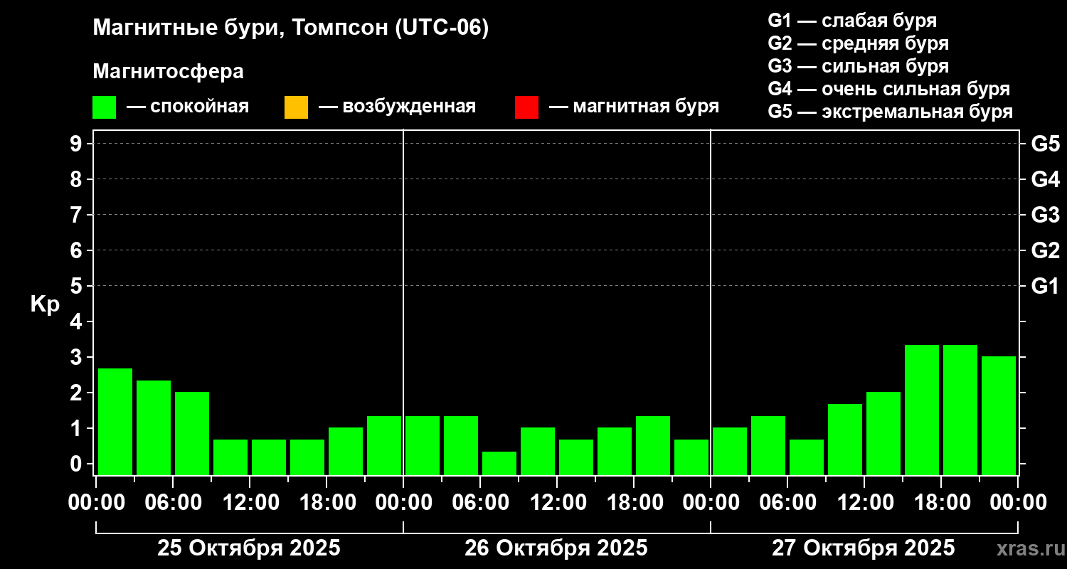 Магнитные бури в Томпсоне — 27 октября 2025 года