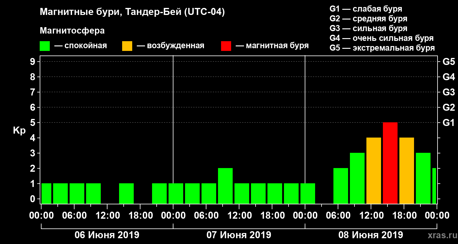 Магнитные бури в Тандер-Бейе 8 июня 2019 года