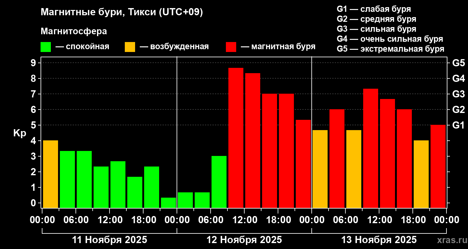 Магнитные бури Тикси 13 ноября 2025 года