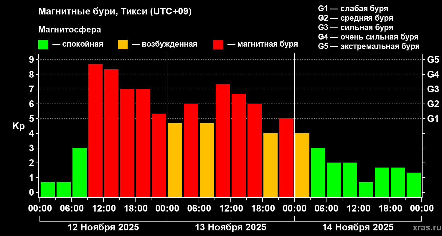 Магнитные бури Тикси 14 ноября 2025 года