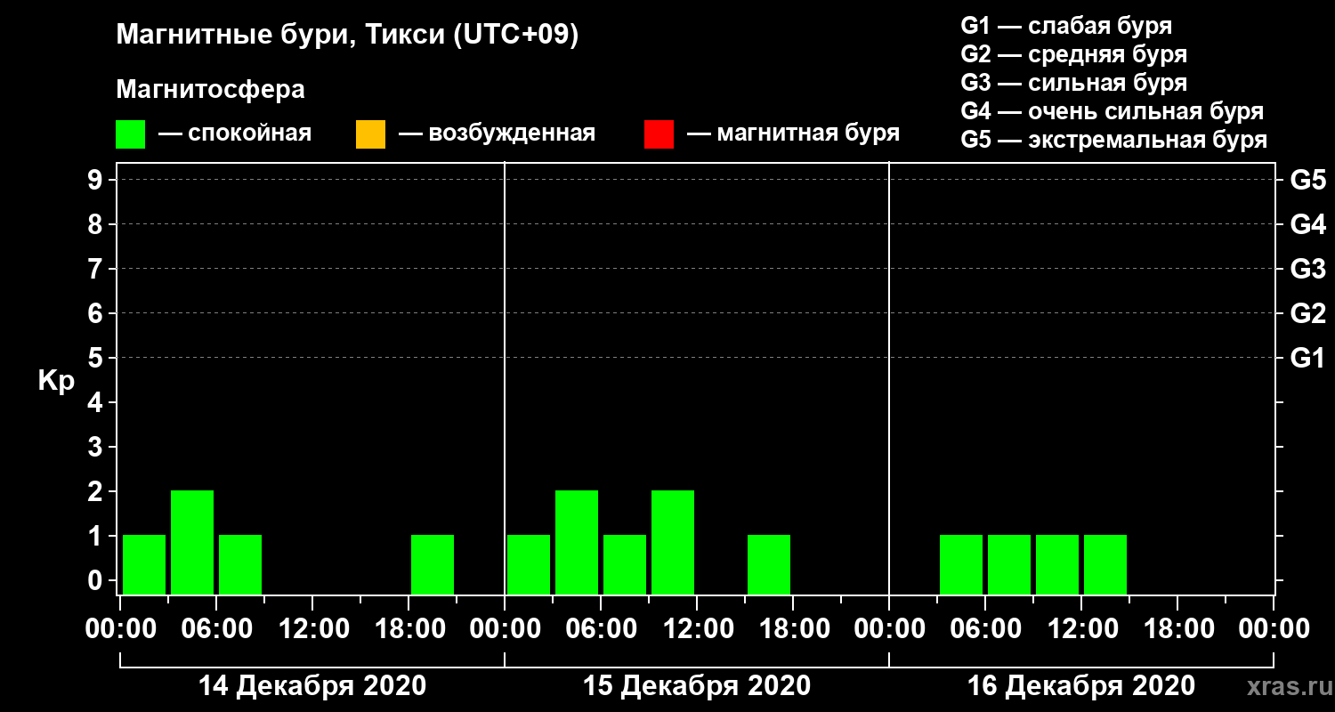 Изменения геомагнитного индекса Kp с 14 по 16 декабря 2020 года для средних широт