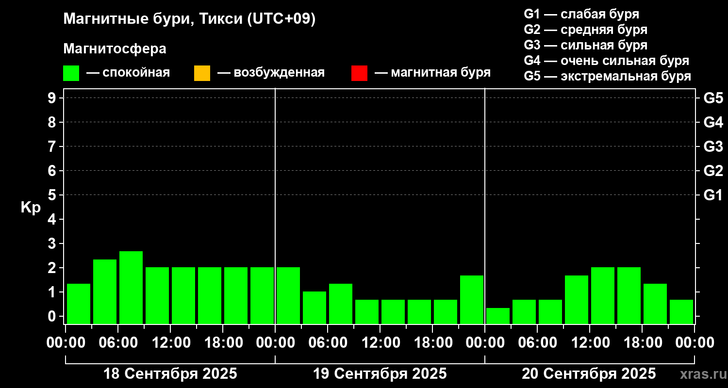 Изменения геомагнитного индекса Kp с 18 по 20 сентября 2025 года для средних широт