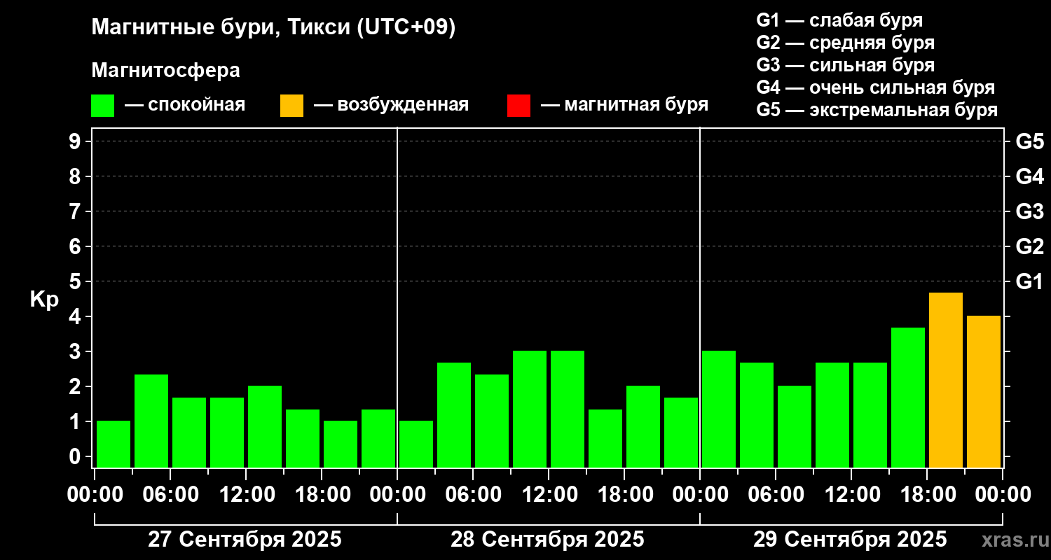 Магнитные бури Тикси 29 сентября 2025 года