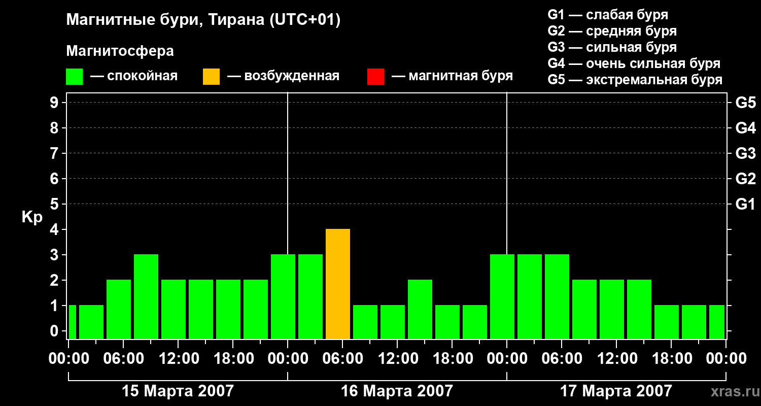 Магнитные бури в Тиране — 17 марта 2007 года