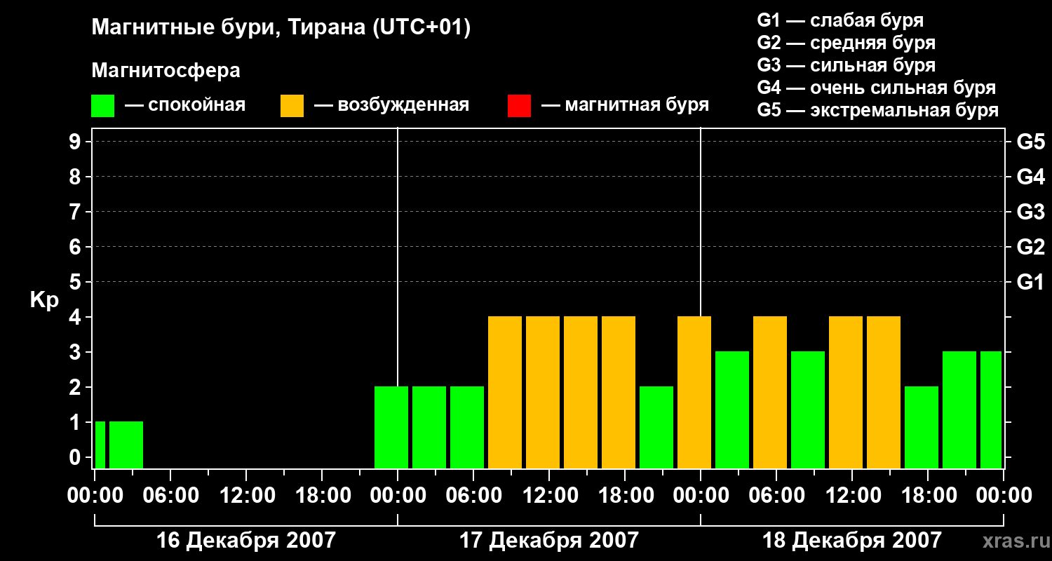 Магнитные бури в Тиране — 18 декабря 2007 года