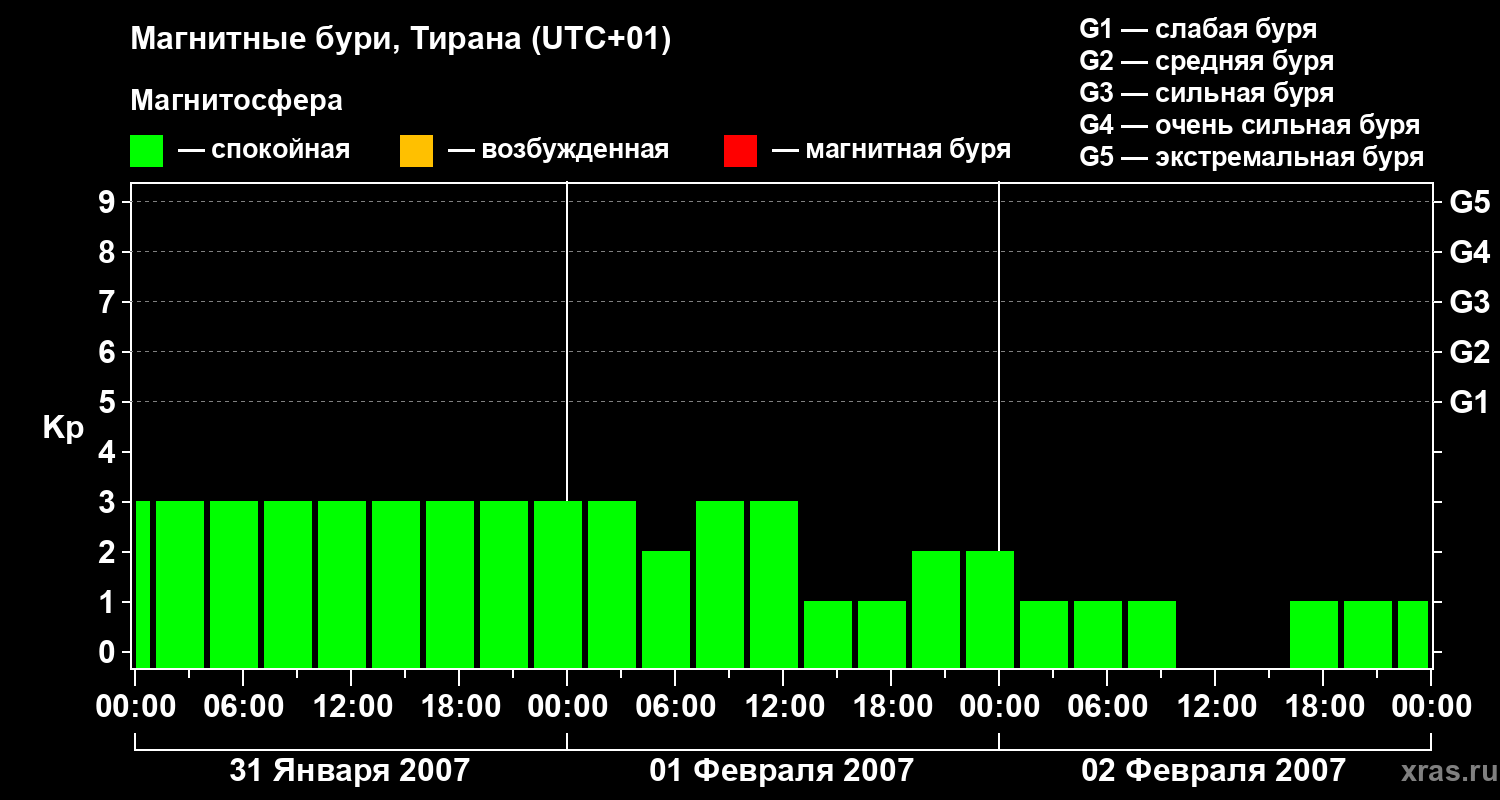 Магнитные бури в Тиране — 2 февраля 2007 года