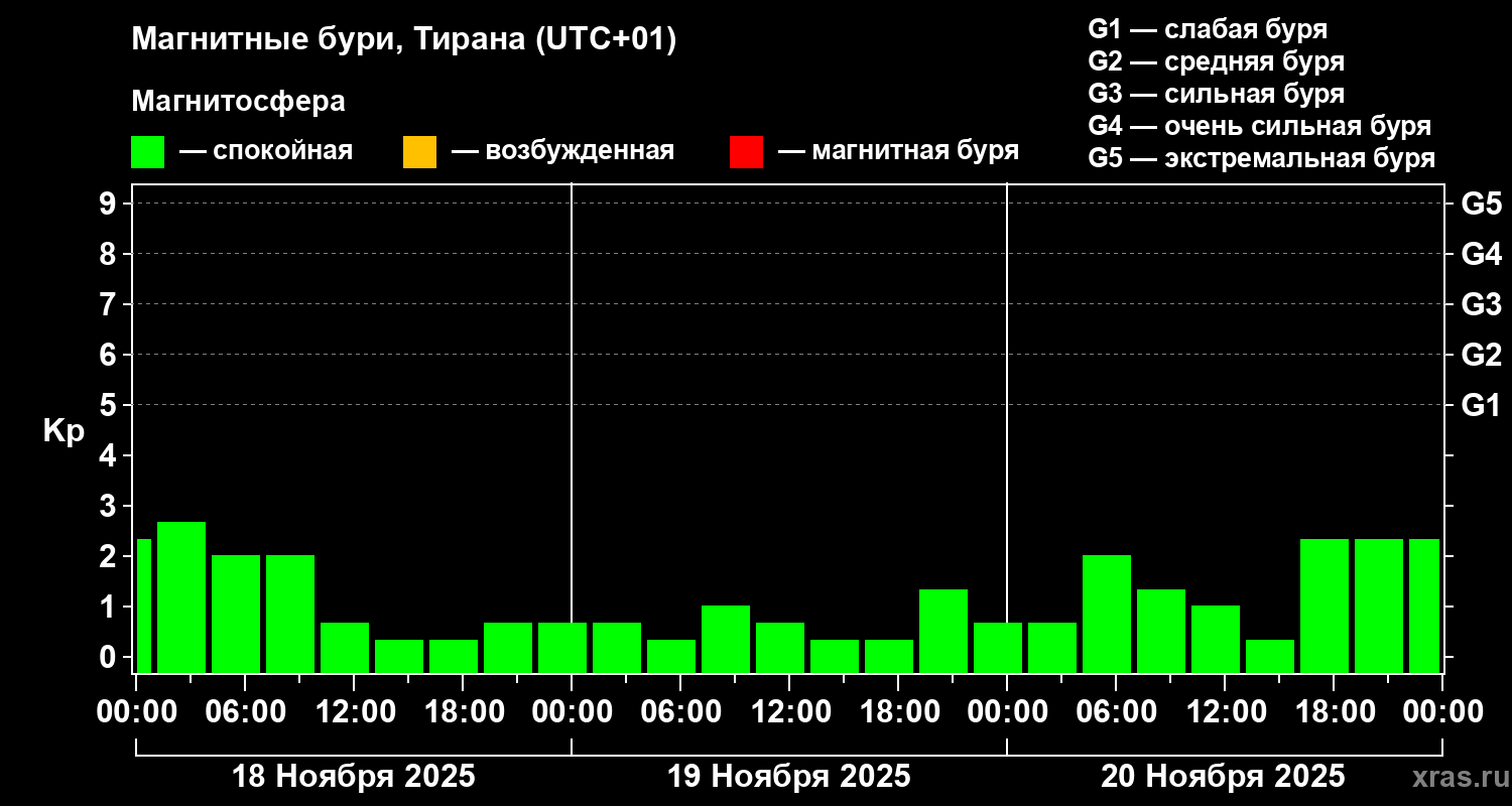 Магнитные бури в Тиране — 20 ноября 2025 года
