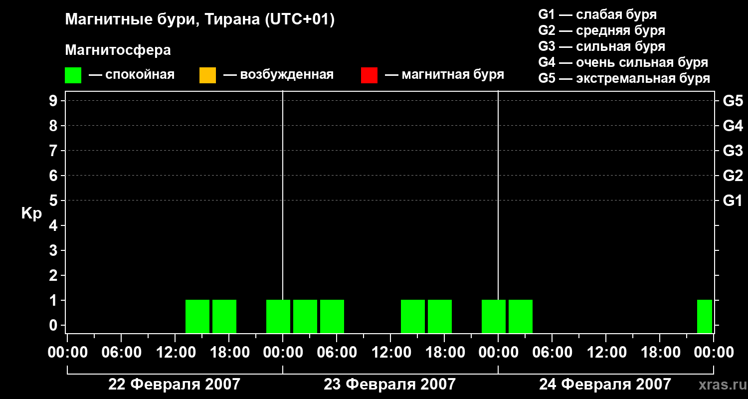 Магнитные бури в Тиране — 24 февраля 2007 года