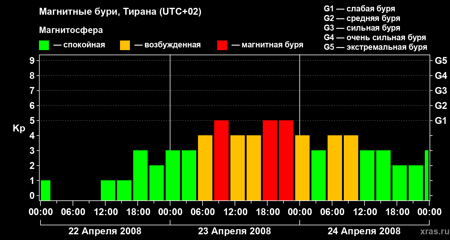 Магнитные бури в Тиране — 24 апреля 2008 года