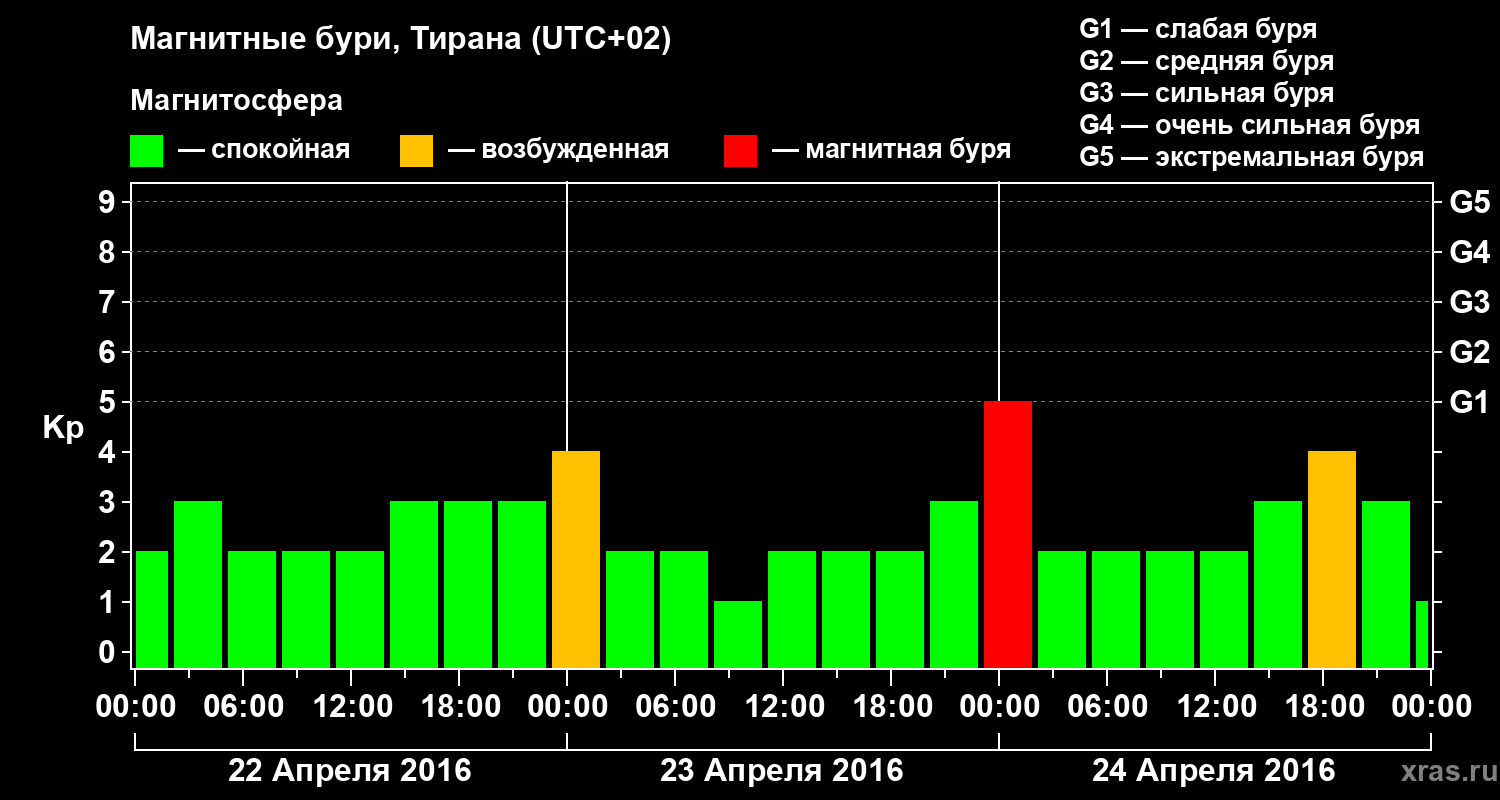 Магнитные бури в Тиране — 24 апреля 2016 года