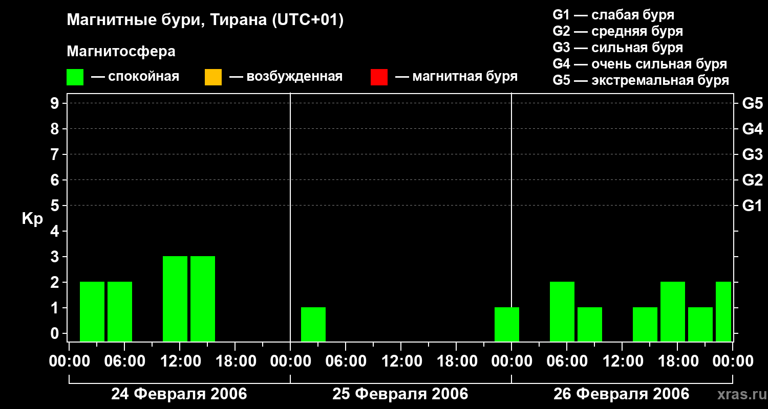 Магнитные бури в Тиране — 26 февраля 2006 года