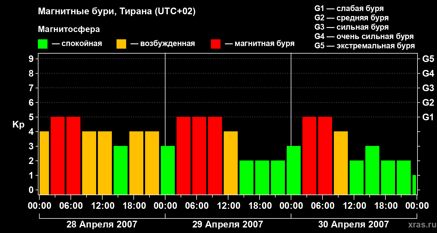 Магнитные бури в Тиране — 30 апреля 2007 года
