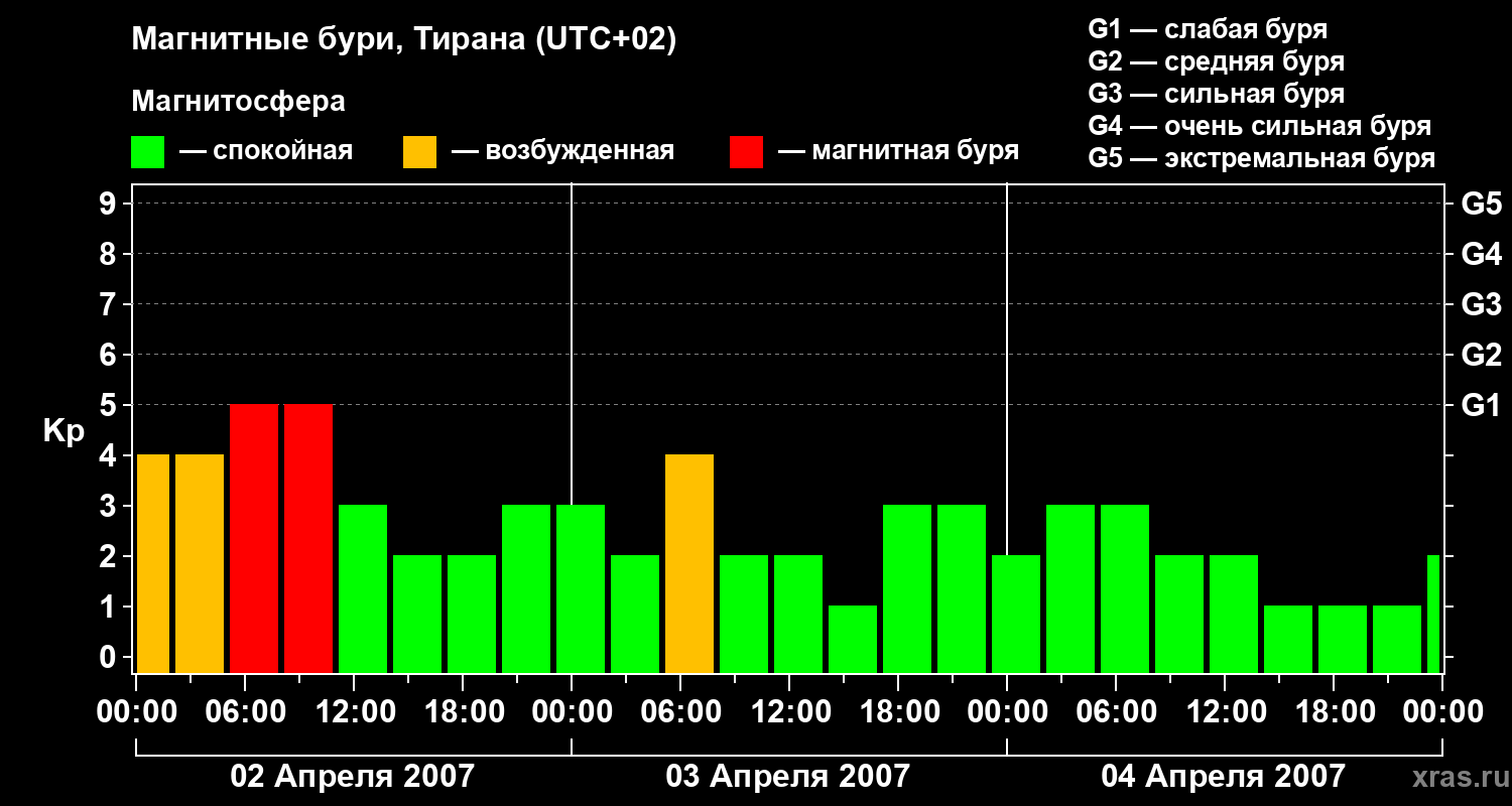 Магнитные бури в Тиране — 4 апреля 2007 года
