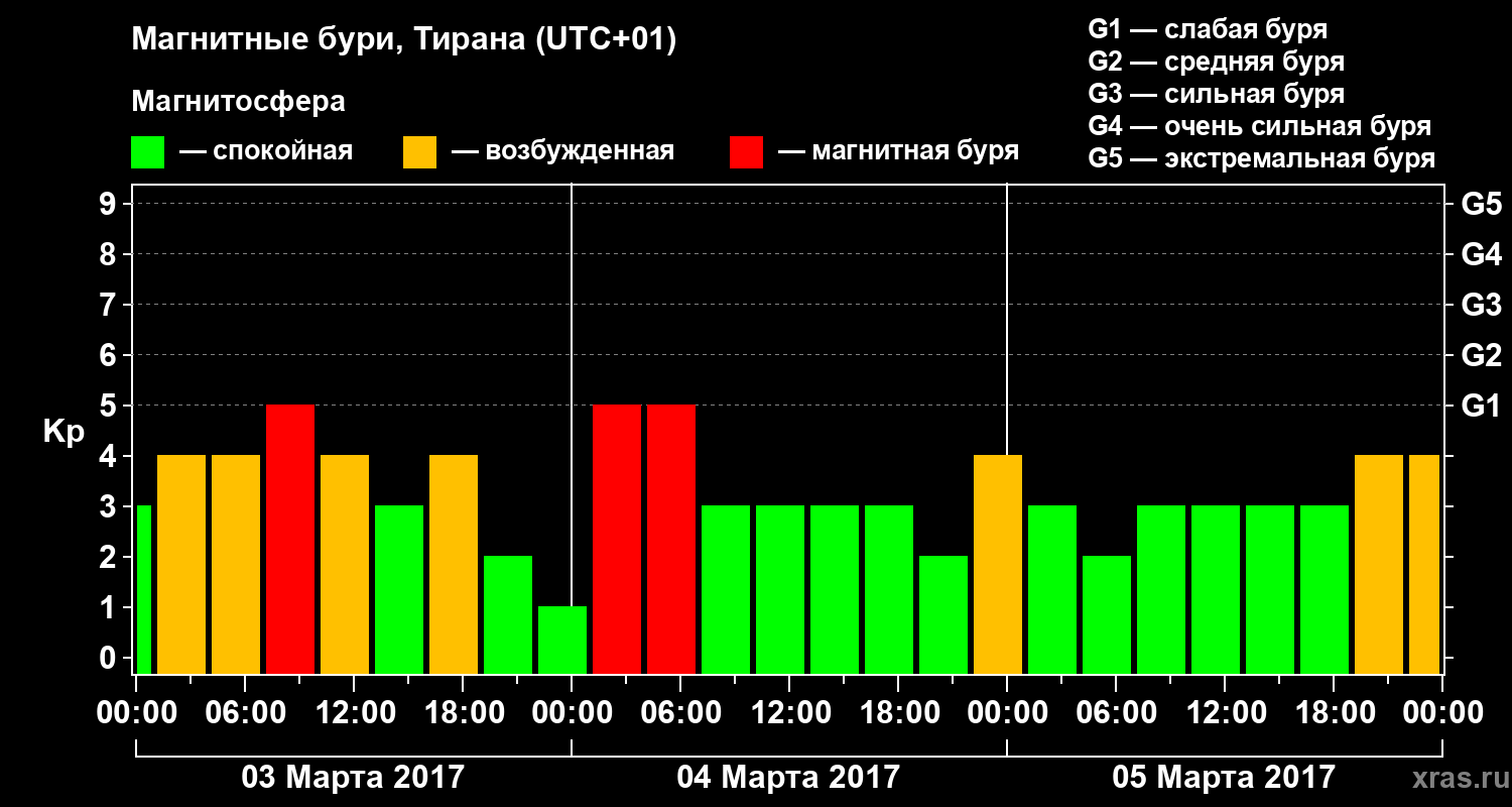 Магнитные бури в Тиране — 5 марта 2017 года