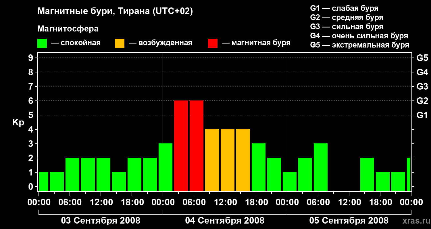 Магнитные бури в Тиране — 5 сентября 2008 года
