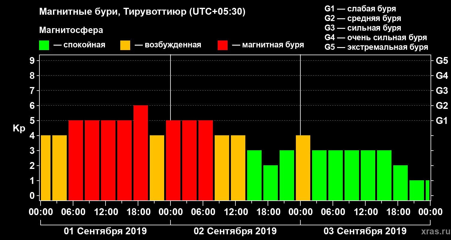 Магнитные бури в Тирувоттиюре 3 сентября 2019 года