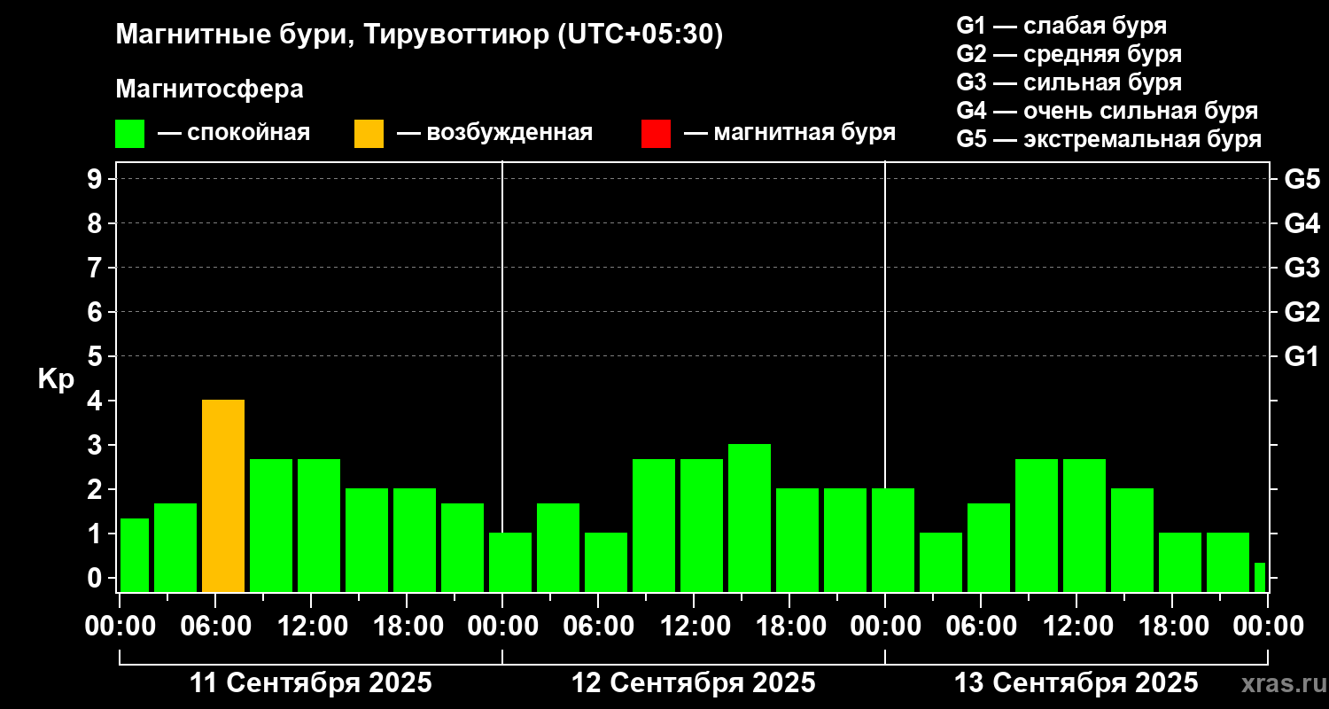 Магнитные бури в Тирувоттиюре — 13 сентября 2025 года