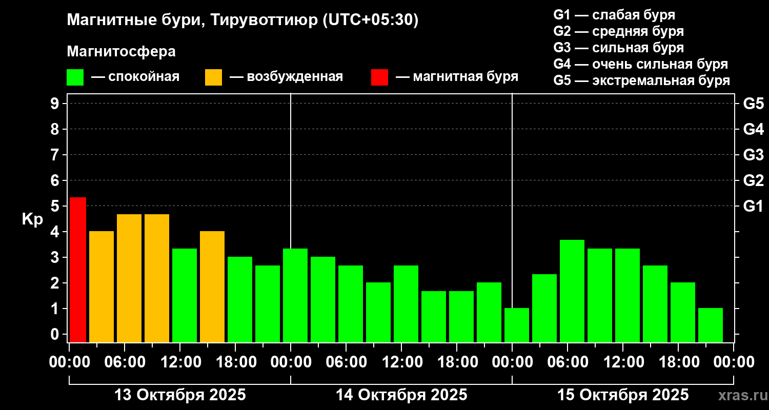 Магнитные бури в Тирувоттиюре — 15 октября 2025 года