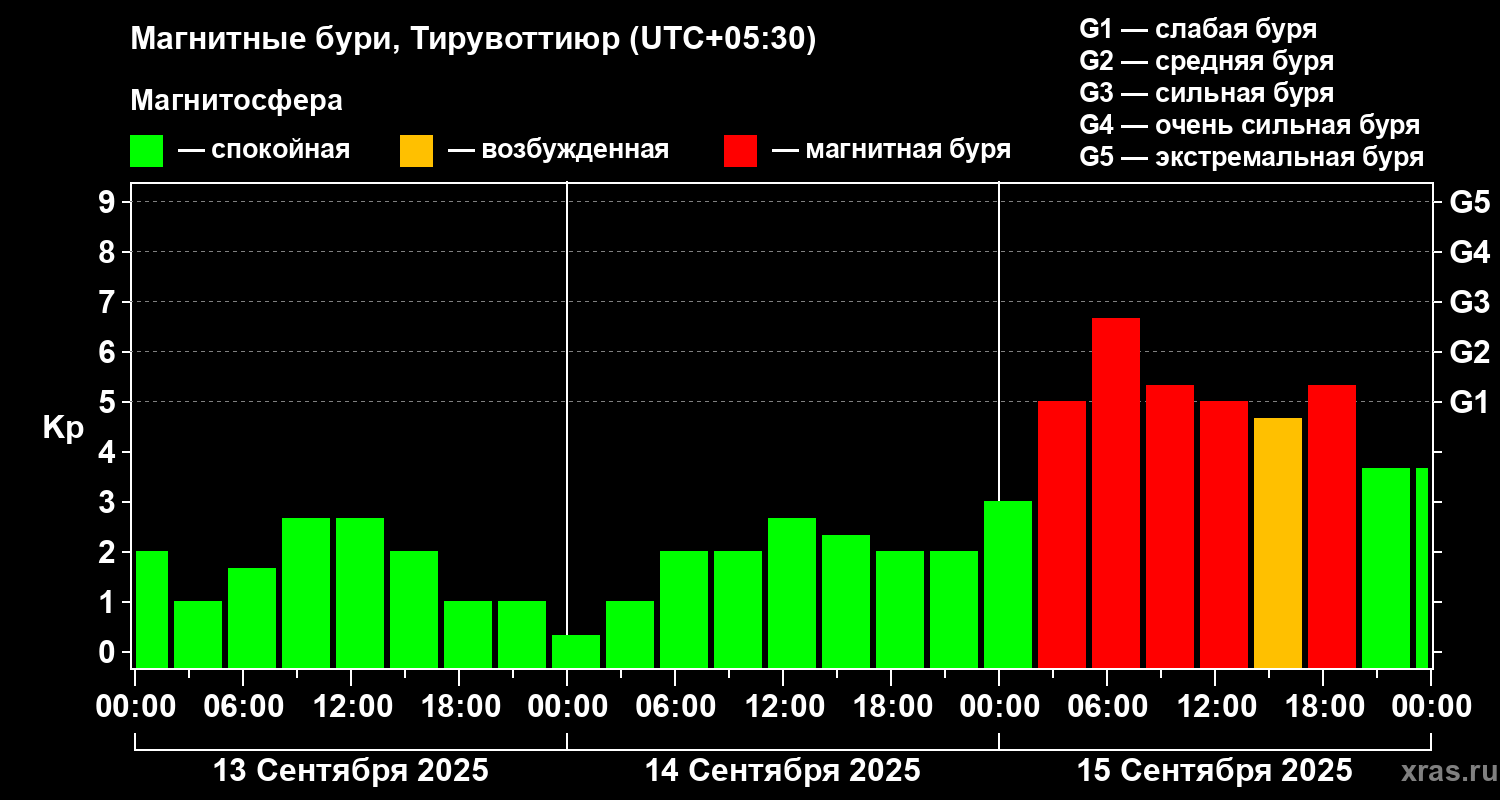 Магнитные бури в Тирувоттиюре — 15 сентября 2025 года