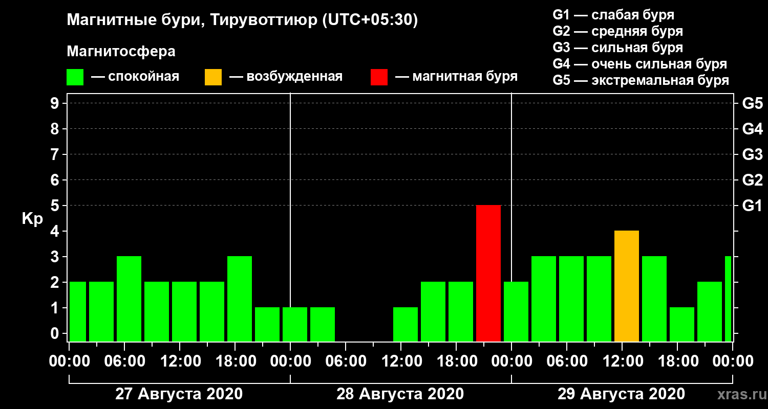 Магнитные бури в Тирувоттиюре 29 августа 2020 года