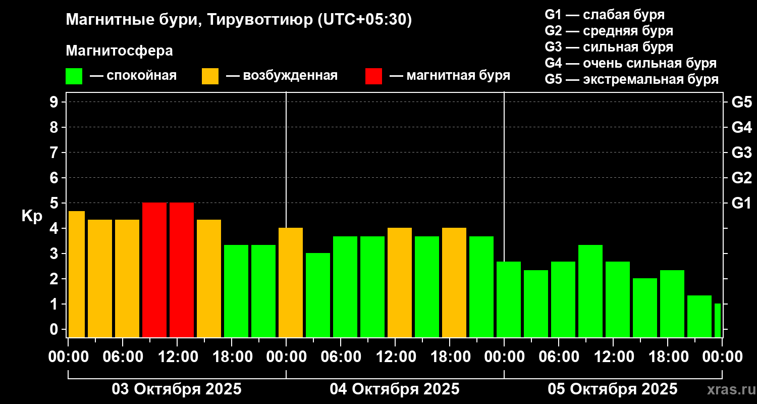 Магнитные бури в Тирувоттиюре — 5 октября 2025 года