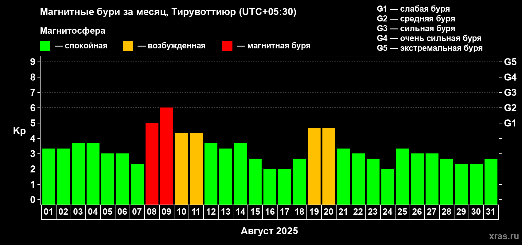 Список магнитных бурь в августе 2025 года