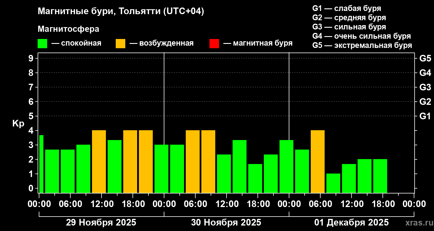 Магнитные бури Тольятти — 1 декабря 2025 года