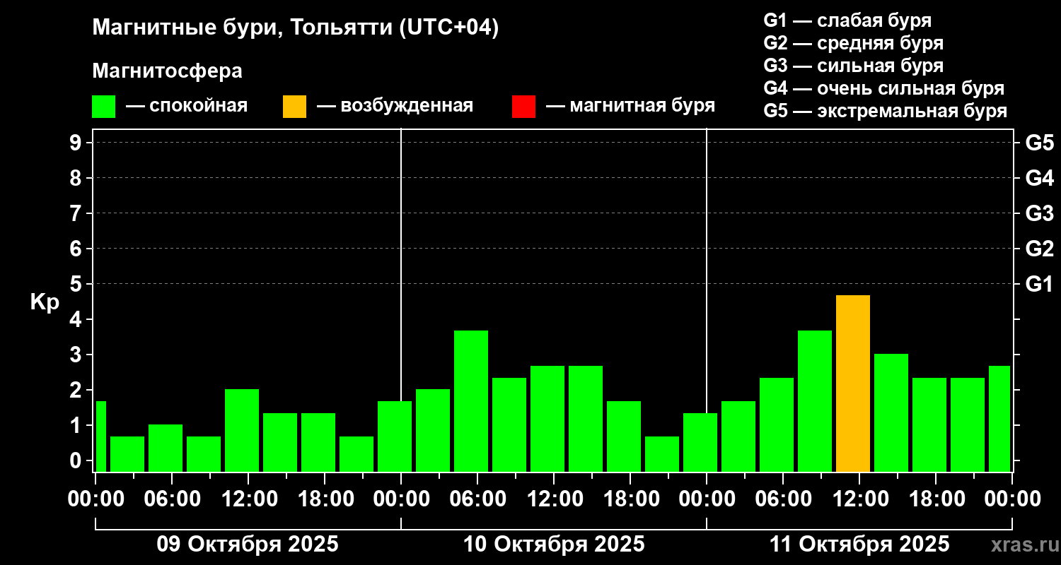 Магнитные бури Тольятти 11 октября 2025 года