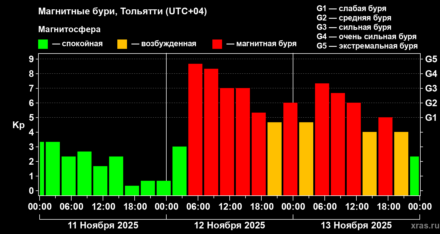 Магнитные бури Тольятти — 13 ноября 2025 года