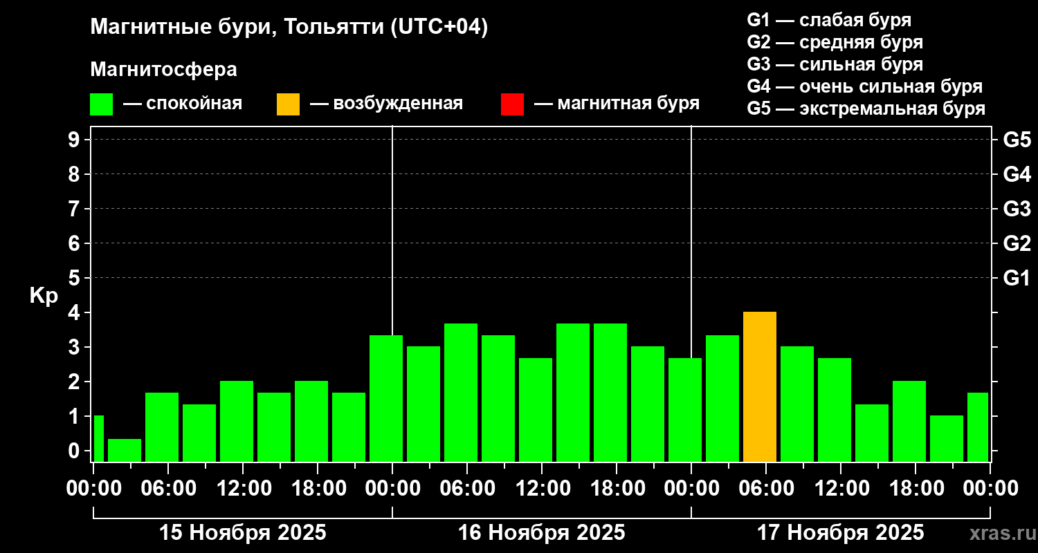 Магнитные бури Тольятти — 17 ноября 2025 года