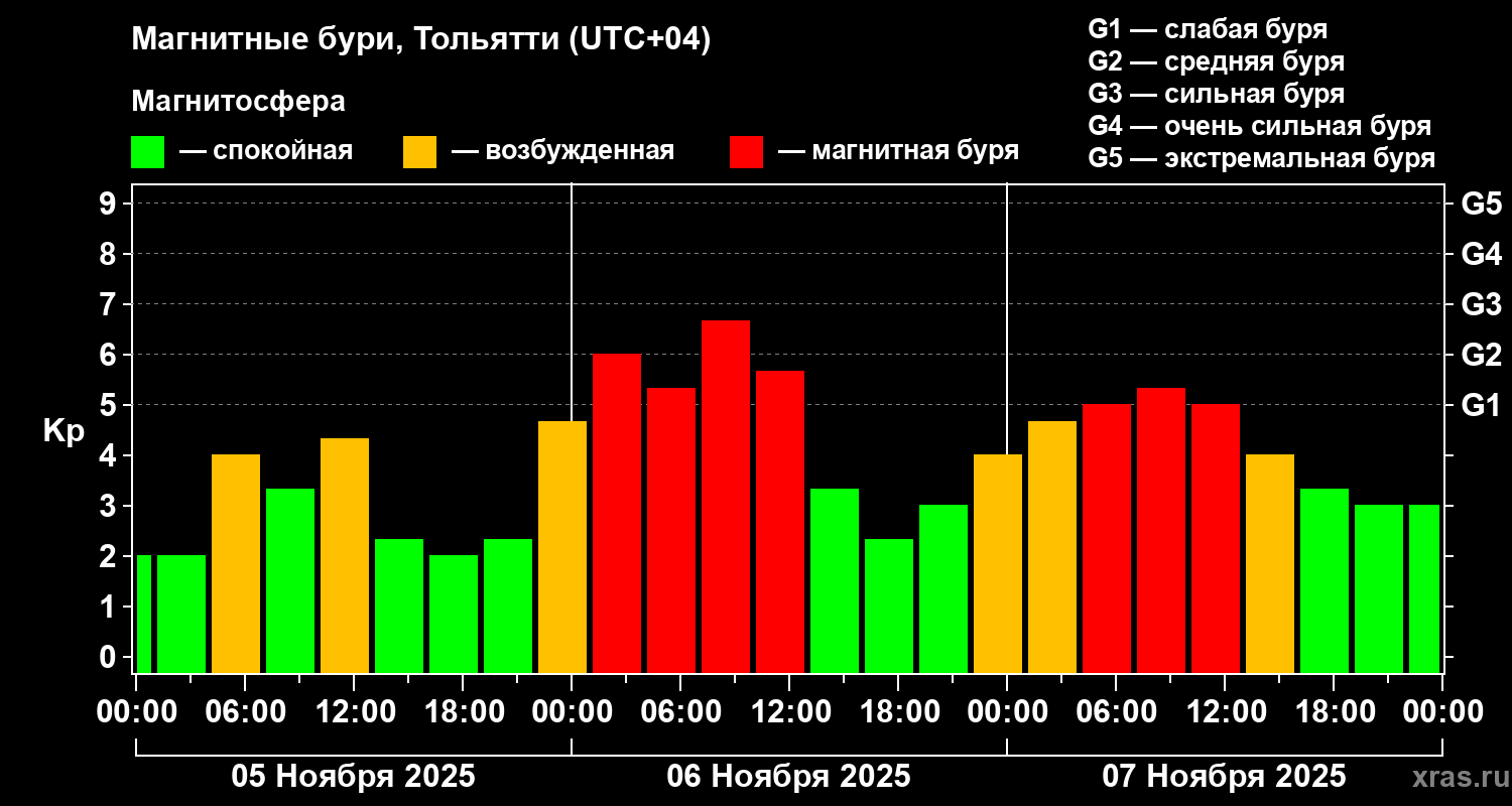 Магнитные бури Тольятти — 7 ноября 2025 года