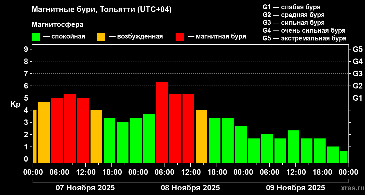 Магнитные бури Тольятти — 9 ноября 2025 года