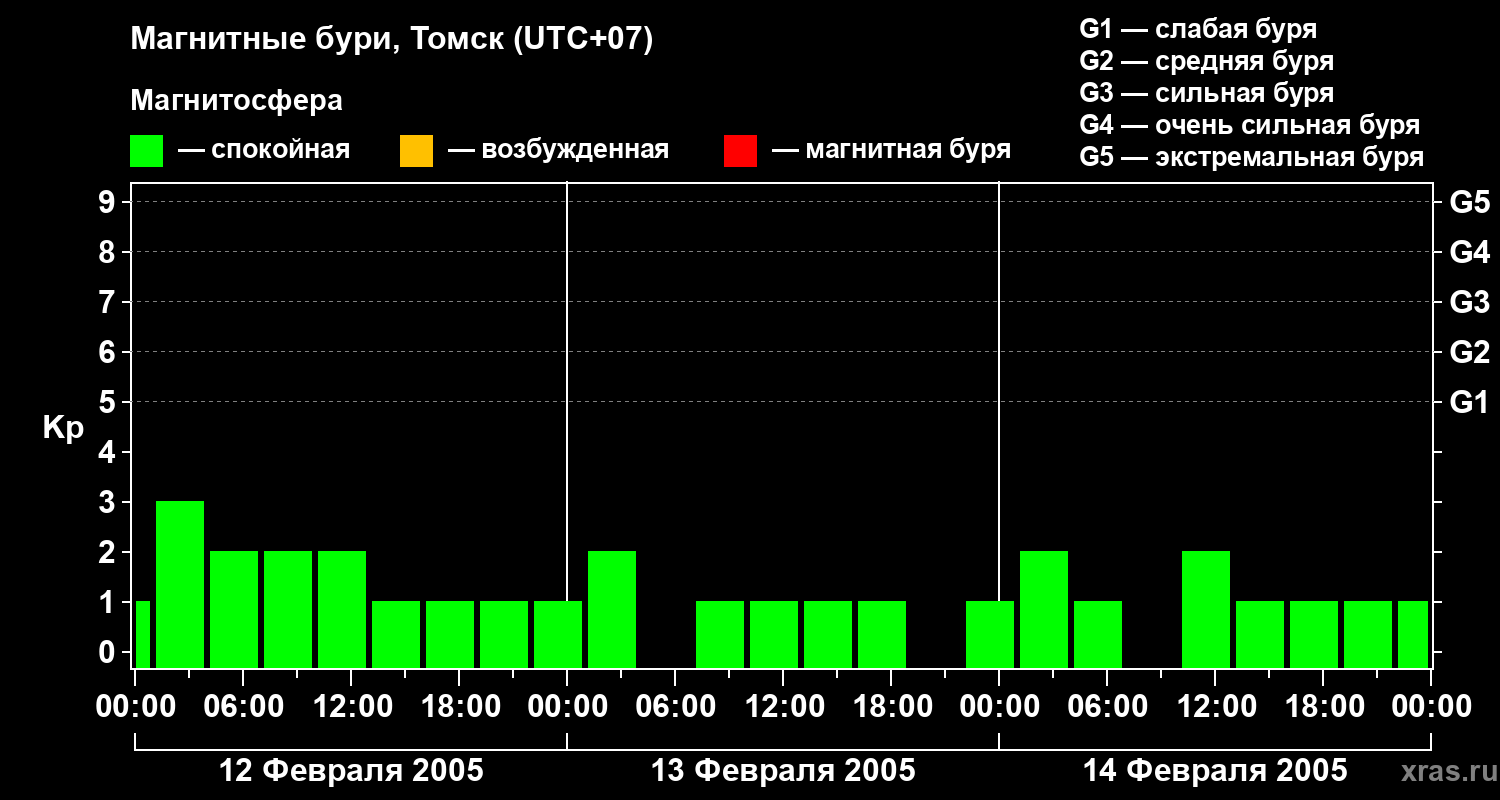 Магнитные бури в Томске — 14 февраля 2005 года