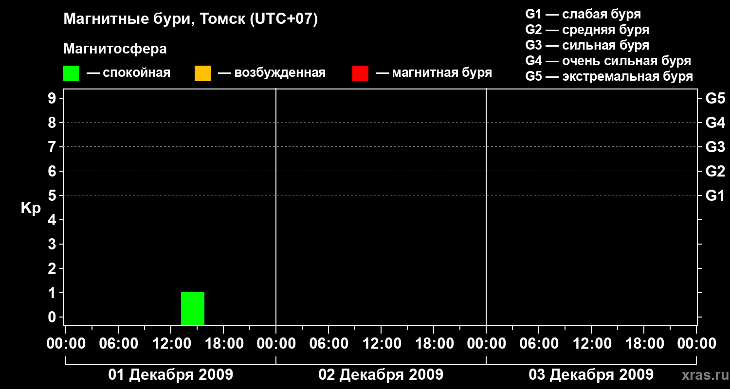 Изменения геомагнитного индекса Kp с 1 по 3 декабря 2009 года для средних широт