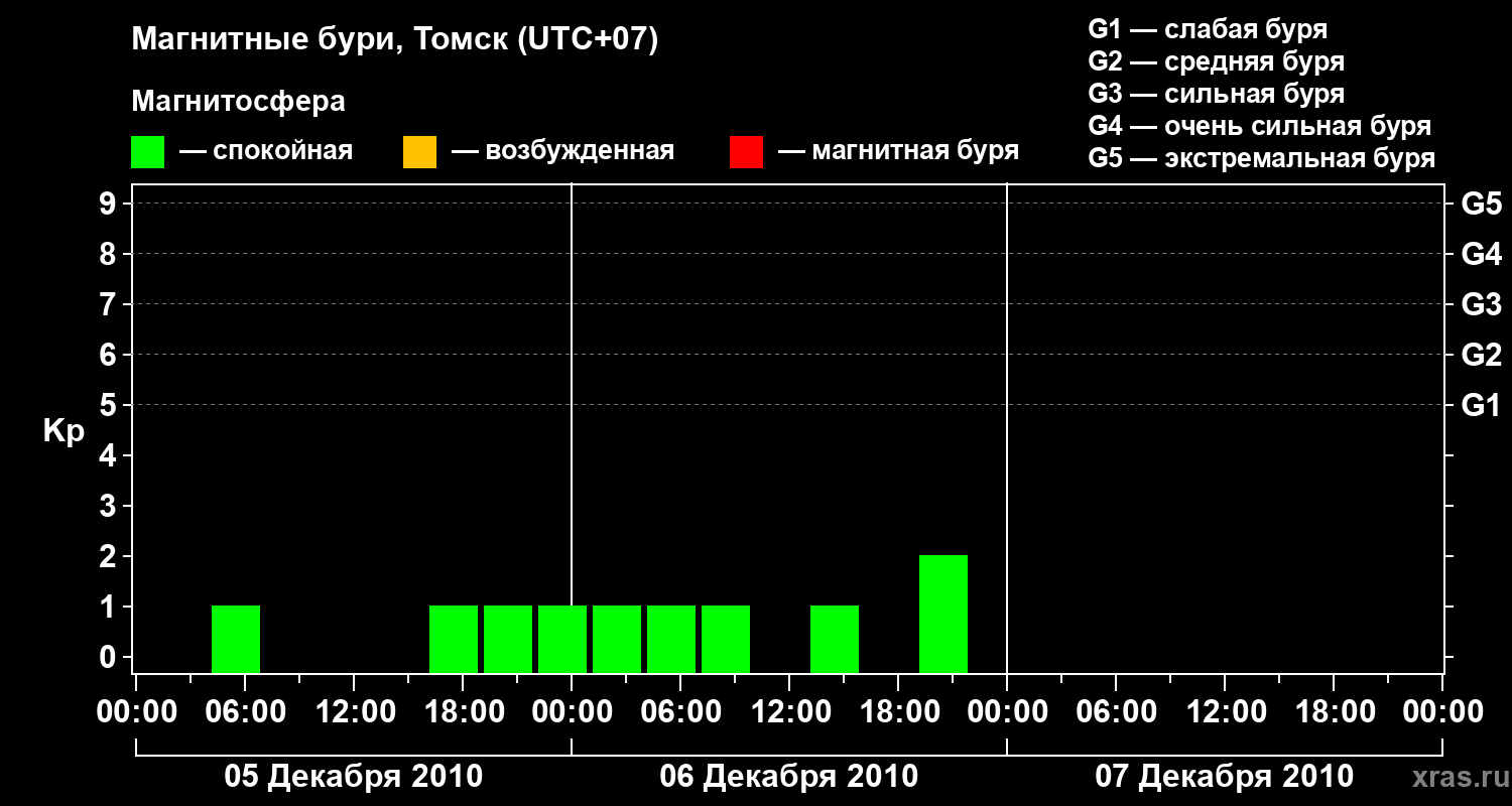 Изменения геомагнитного индекса Kp с 5 по 7 декабря 2010 года для средних широт
