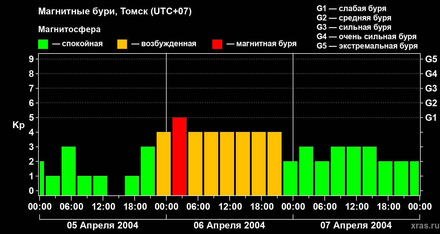 Магнитные бури в Томске — 7 апреля 2004 года
