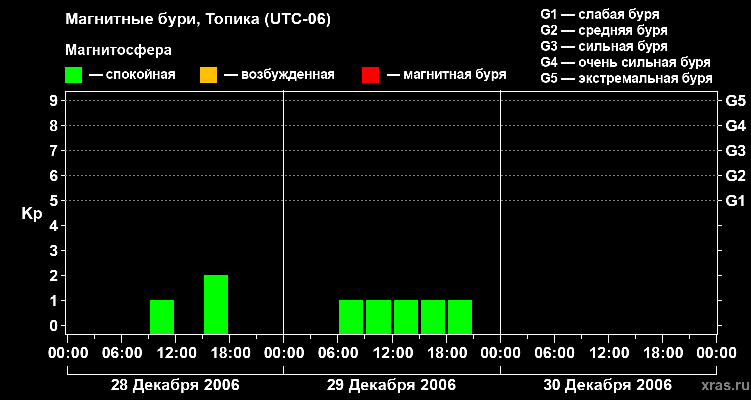Изменения геомагнитного индекса Kp с 28 по 30 декабря 2006 года для средних широт
