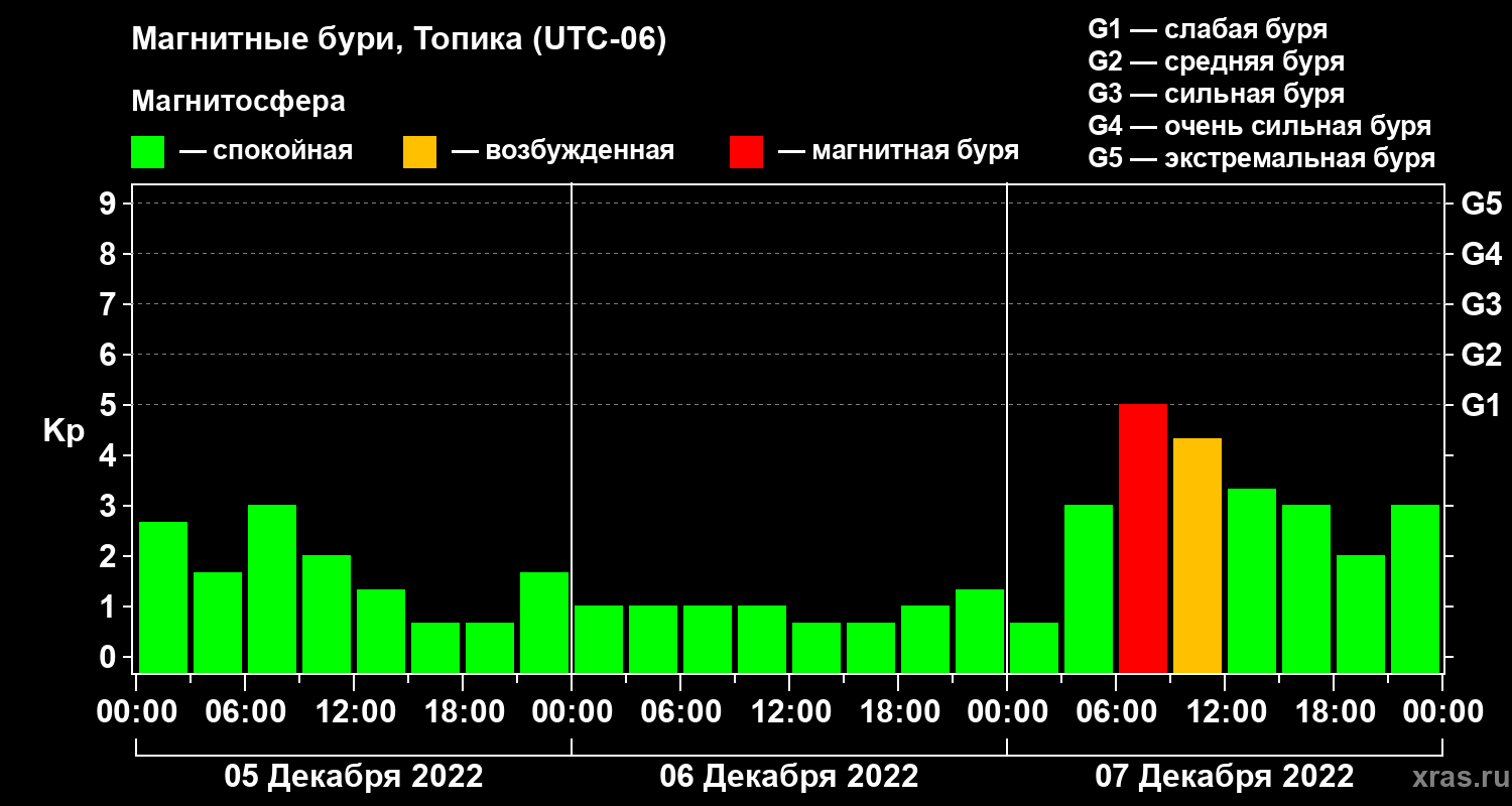 Изменения геомагнитного индекса Kp с 5 по 7 декабря 2022 года для средних широт